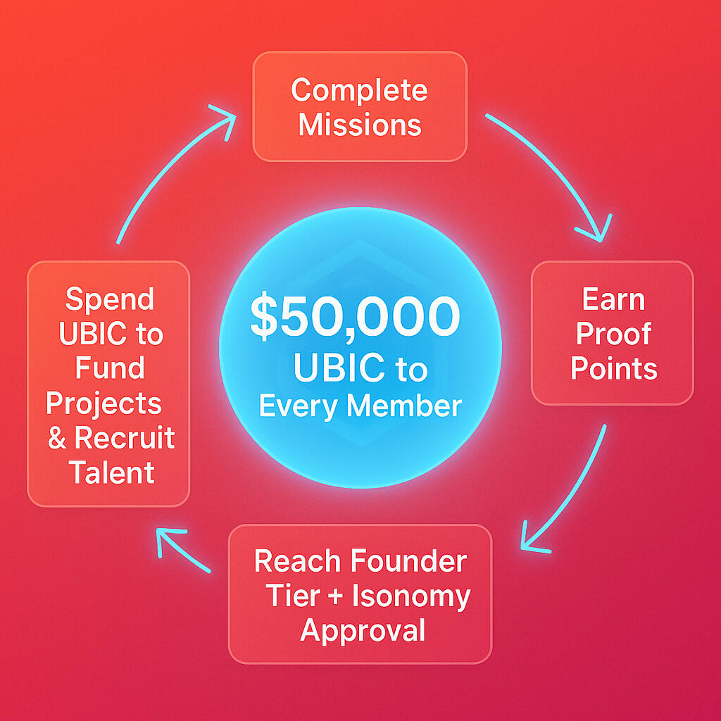 • Circulation, Not Extraction: UBIC never leaves the Hive. Founders use this capital to recruit talent within Hive, pay Builders for their work, and reward collaborators.